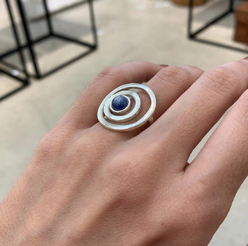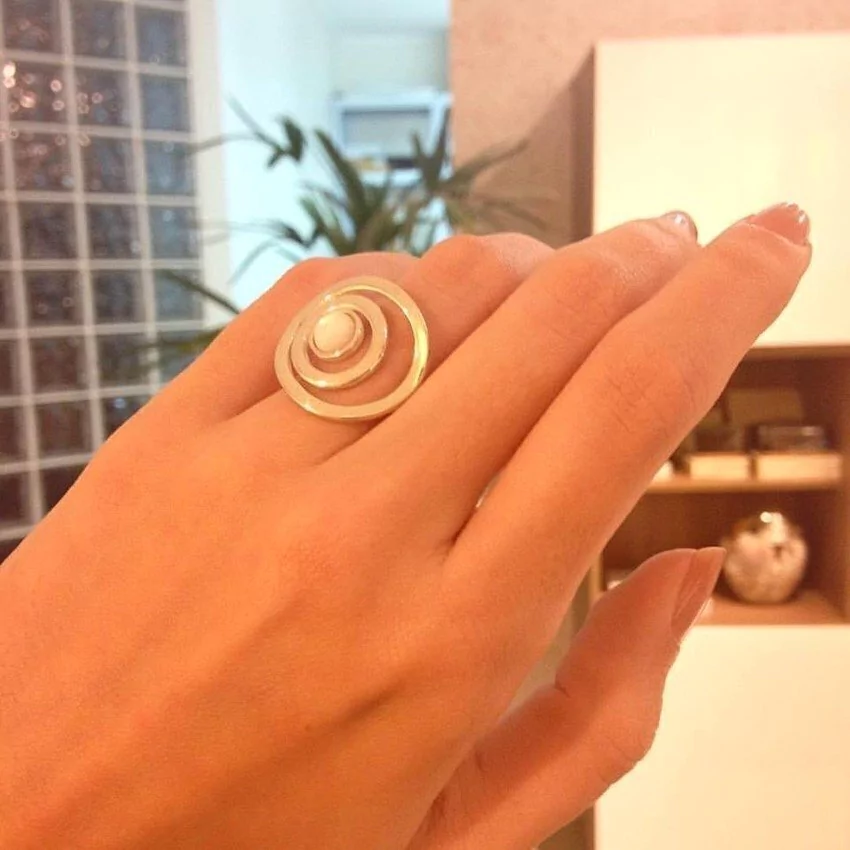 Peça produzida em metal nobre desenvolvida pelas mãos da própria designer de forma artesanal.