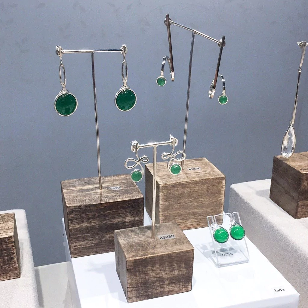 Brincos em prata 950 com pedra de lapidação cabochão redondo.